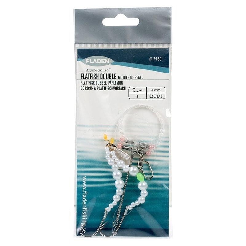 Fladen Flatfish Double Pärlemor Stl 1 Main Line 0.50mm, Leader 0.40mm är ett plattfisktackel med färdigriggad rigg med pärlor.