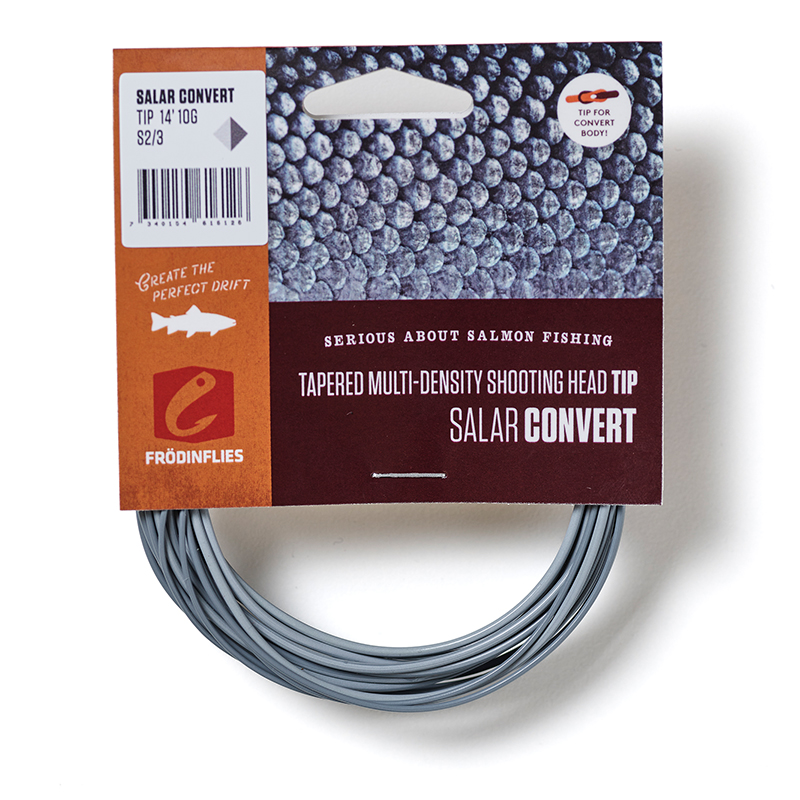 SALAR Convert Intermediate/Sink 2 tip är ett smidigt val när flugan ska fiskas strax under ytan men ändå ha bra kontroll i ström och djuphålor. Den snabbare intermediate-delen framtill håller tafsen under spetsen, vilket ger jämn kontakt med flugan och bättre krokning. Tippdelen fungerar lika bra på flyt- som på Float/Intermediate-body, och den tydliga färgdelningen med mörk bakdel och ljusgrå front gör det lätt att se var spetsen är i vattnet.