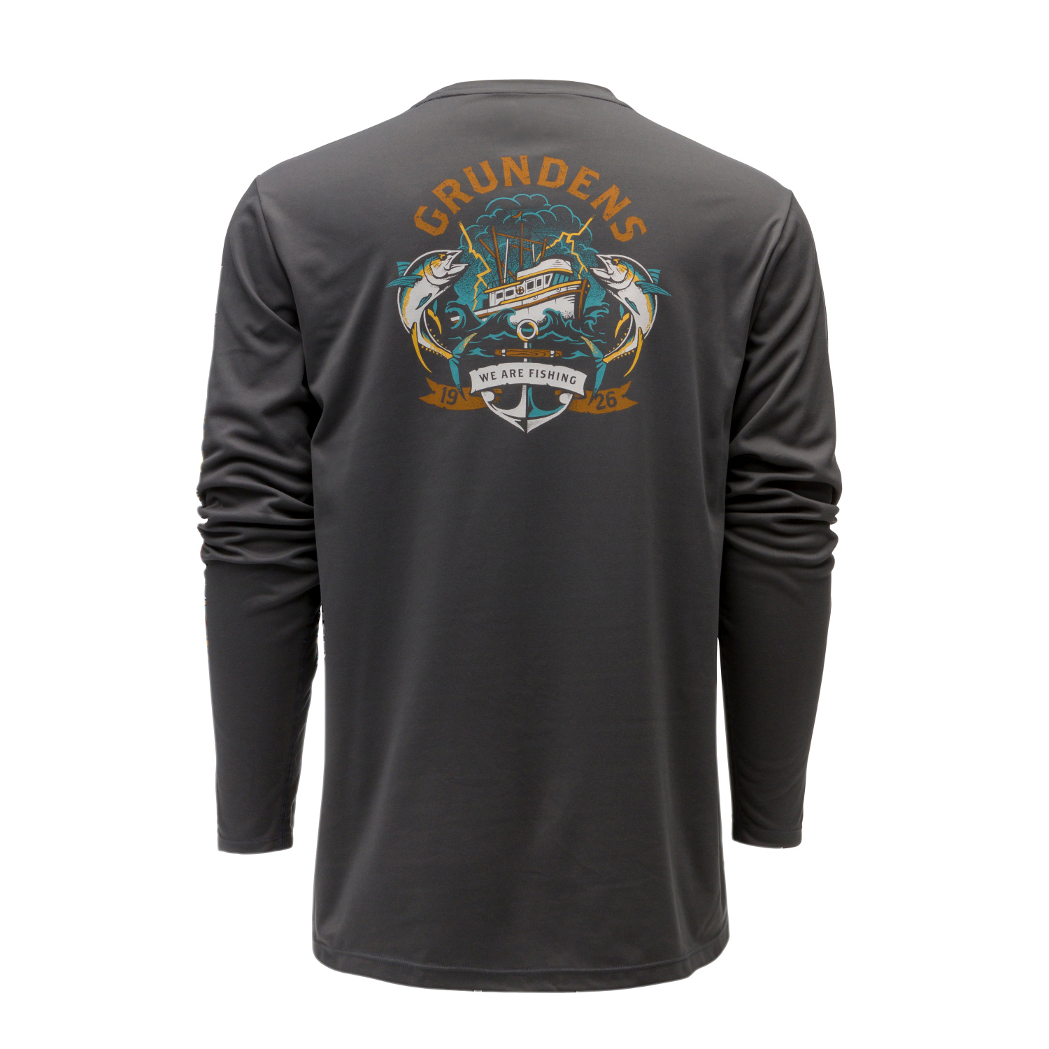 Grundéns Tuna Tattoo LS Tech Tee Anchor - Högpresterande UPF 50-solskydd i en bekväm och mångsidig vardagstee med en rolig dos Grundéns-grafik. Tillverkad i borstad polyester som är fukttransporterande, snabbtorkande och mjuk, förstärkt med en Anti-Odor Finish.