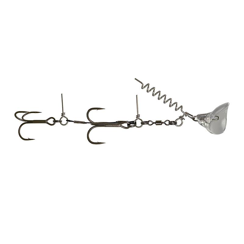 Stinger-riggen är utrustad med premiumkrokar BKK 6062-1X-NP SS för säker krokning, även på försiktiga hugg. Mindre rigg har storlek #1/0 och #1, den större har #2/0 – dimensionerat för gädda, gös och grov abborre som gärna plockar svansbeten.