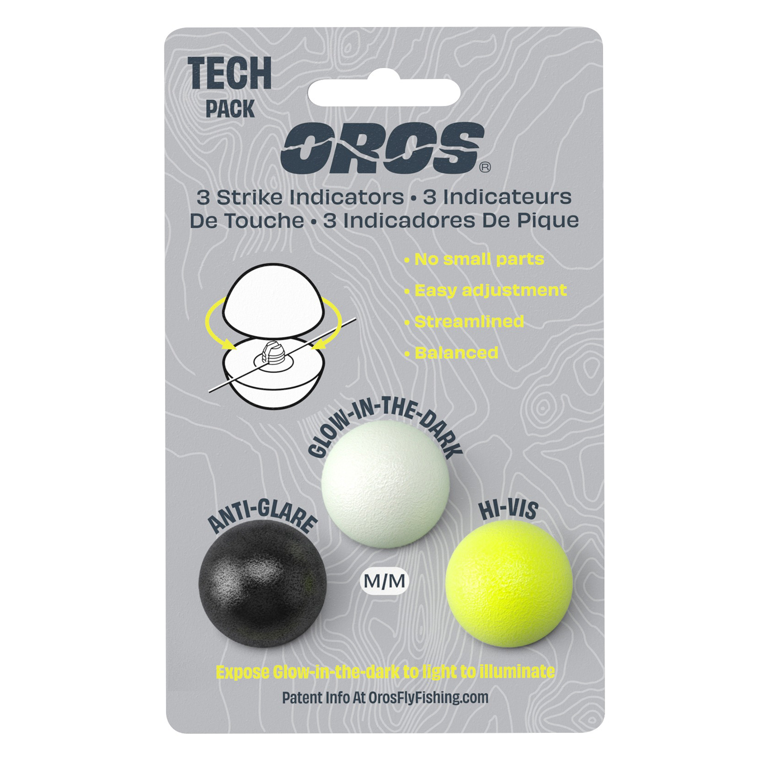 Oros Strike Indicator 3 Tech Pack – en revolutionerande indikatorpaket för ett effektivt fiske. Paketet inkluderar tre olika färger: lys i mörkret, svart/antireflex och högvisibilitet chartreuse.