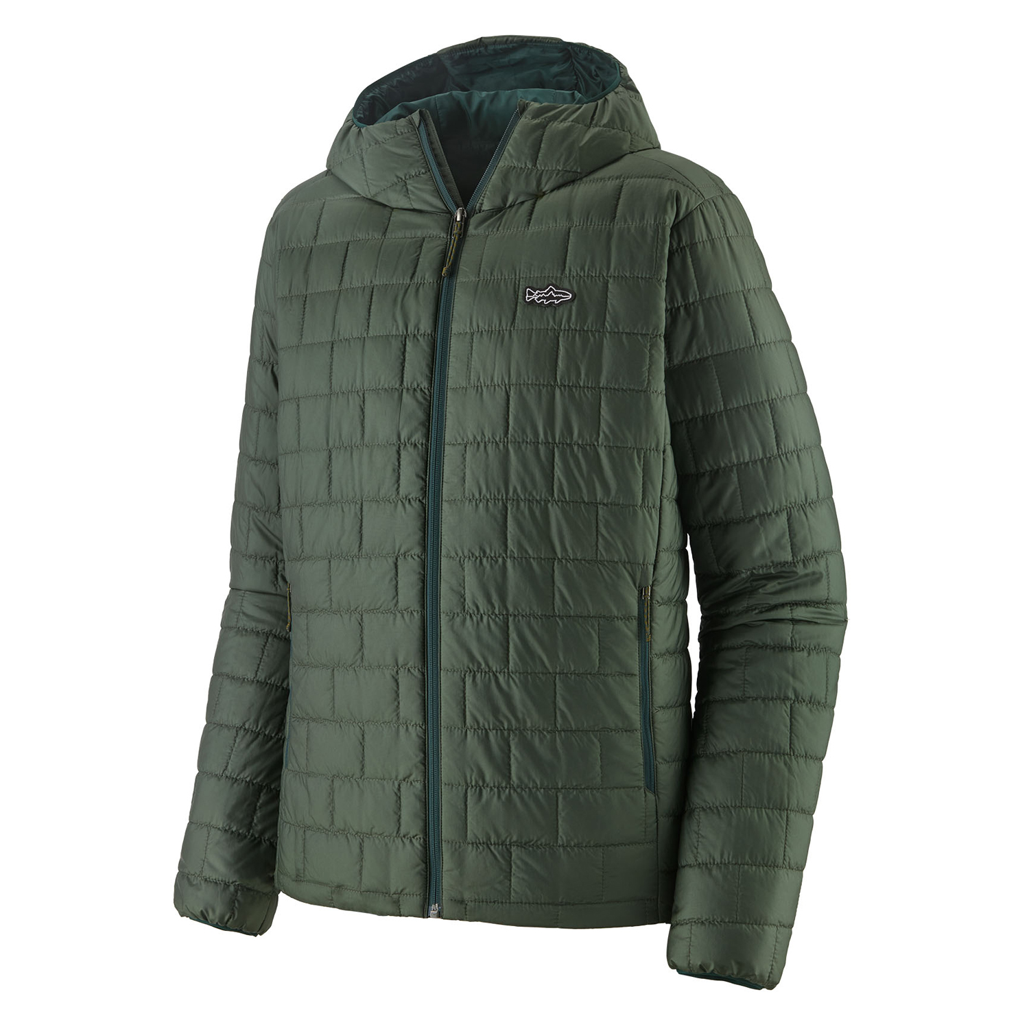 Patagonia M's Nano Puff Fitz Roy Trout Hoody är en varm och vattenresistent jacka med lättviktigt, komprimerbart foder för enkel packning.