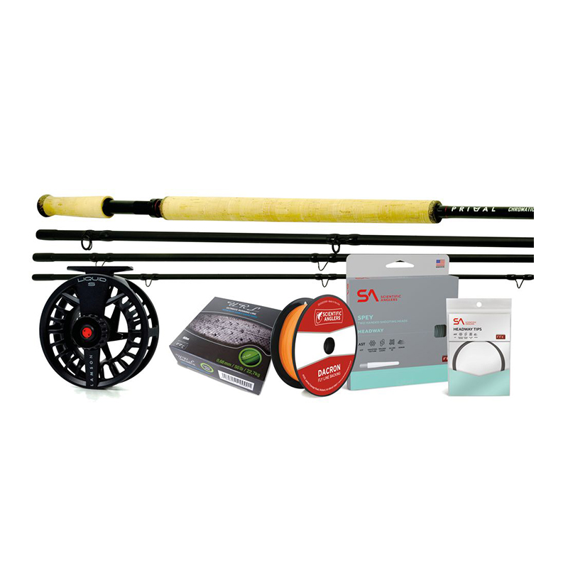 Primal Chromatic double-handed Kit är ett genomtänkt tvåhandspaket för dig som vill ha en färdig, välmatchad utrustning till älv- och laxfiske. Kitet bygger på ett 12,6’ #7 fyrdelat Primal Chromatic tvåhandsspö som levereras med tygfodral och tåligt cordura-spöfodral för säker transport.