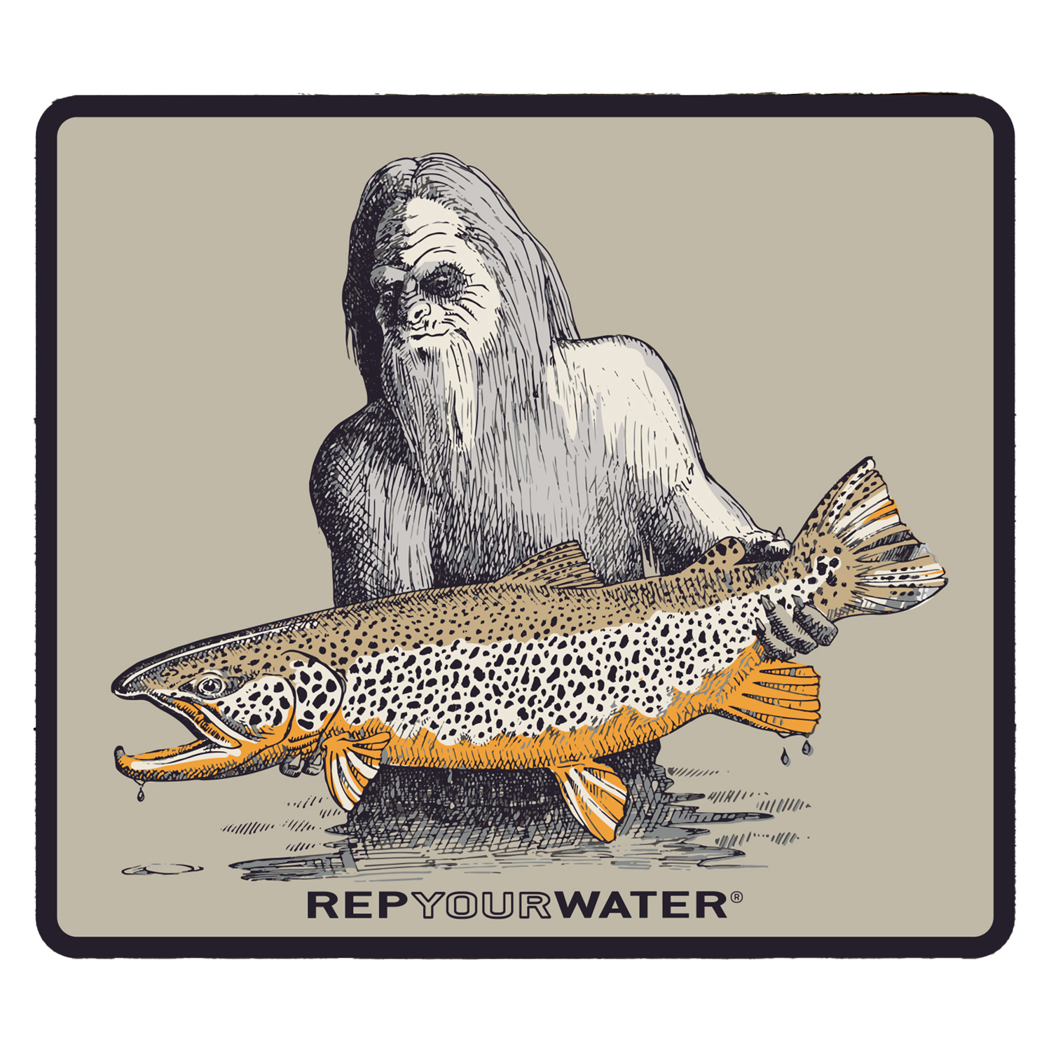 Hero Squatch-dekalen från RepYourWater är tryckt på vitt vinyl med glansig finish – perfekt för bil, kylbox eller beteslåda.