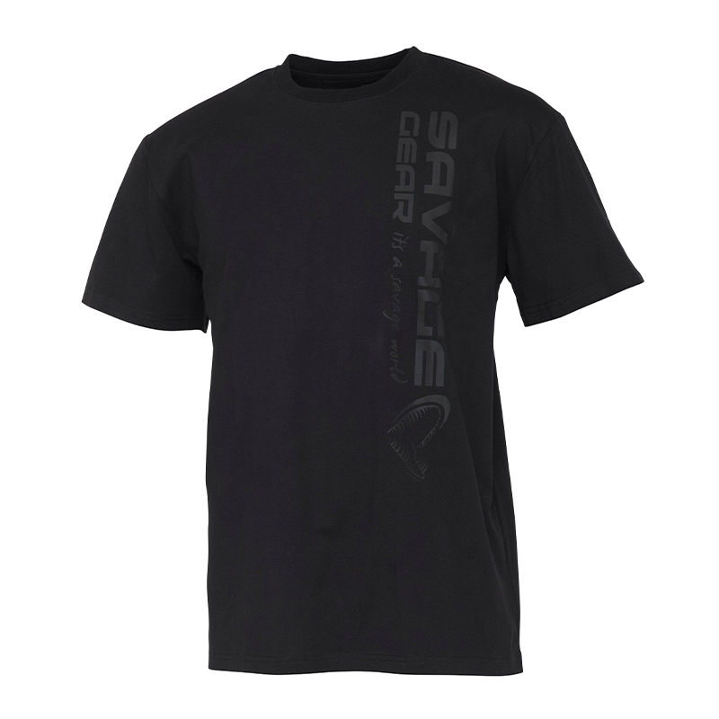 T-shirt med vertikal Savage Gear-logga som verkligen syns. Skön bomullskvalitet för sportfiskare både vid vattnet och till vardags.