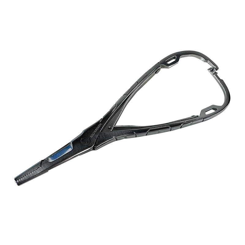 En robust, fjäderbelastad tång i rostfritt stål som täcker det mesta vid fiske – från att klippa lina till att hantera krokar. Fjädermekanismen gör att tången öppnar sig själv, vilket ger bra kontroll när händerna är kalla eller blöta. Rostfritt stål står emot både sötvatten och saltvatten och passar därför lika bra i insjön som i skärgården.