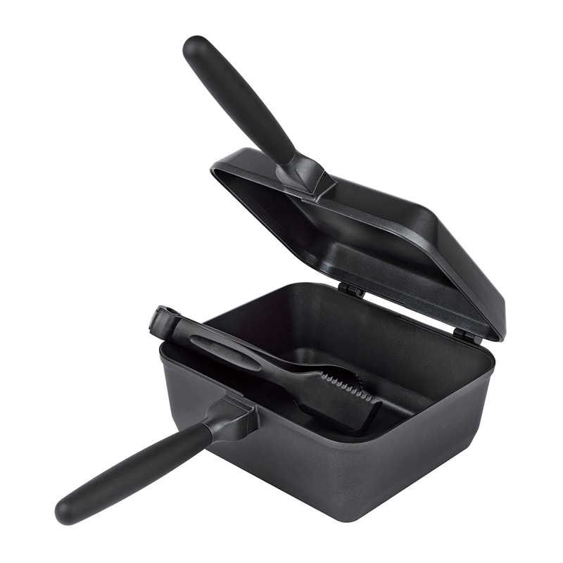 Mångsidigt matlagningsset i aluminium med non-stick, löstagbara handtag och tänger. Ger dig stekpanna och kastrull i samma paket.